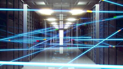 Digital Animation Of Cloud Networking And Security Over Server Room Videos