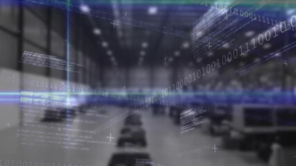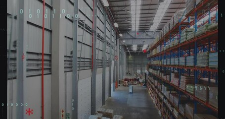 Digital Binary Code Overlay In Warehouse With Shelving Videos