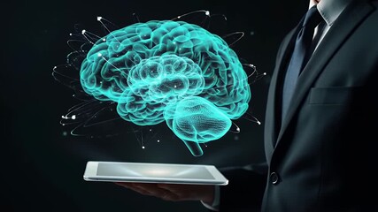 Digital Brain Interface With Businessman Analyzing Data Videos