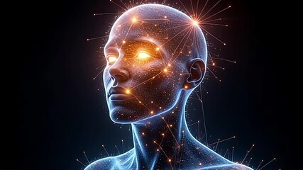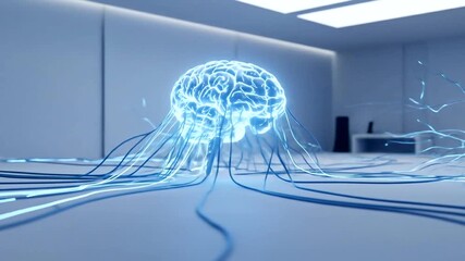 Digital Brain Model With Glowing Neural Connections In Virtual Space Videos