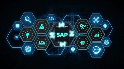 Digital Business Data Processing With Technology Icons Videos