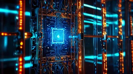 Digital Circuit Board Data Processing On Blue Background Videos
