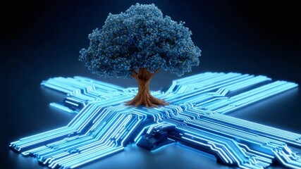 Digital Circuit Tree Symbolizing Advanced Ai Networking Videos