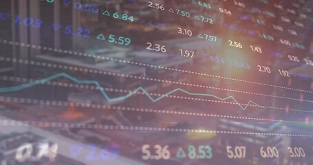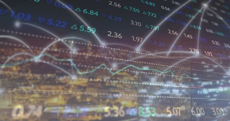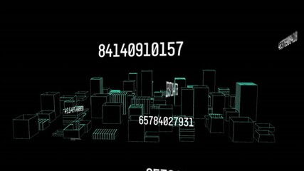 Digital Cityscape With Floating Data Visualization Numbers Videos