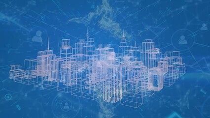 Digital Cityscape With Network Connections Over Blue Background Videos