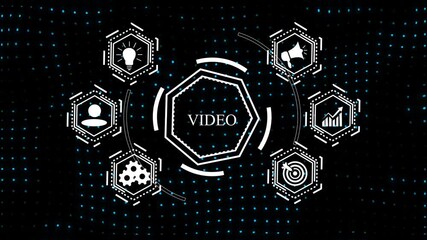 Digital Clock Interface With Data Streams On Abstract Screen Videos