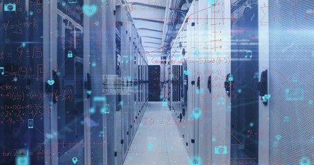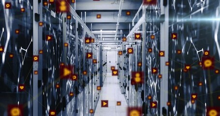 Digital Communication Icons Over Database Servers Videos