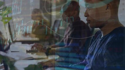 Digital Connection Network Over Man Using Computer In Office Videos