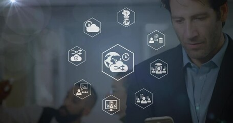 Digital Connection Network Over Man Using Computer In Office Videos