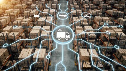 Digital Connection Overlay On Stacked Cardboard Boxes Videos
