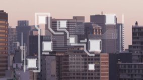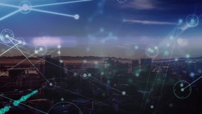 Digital Connections Animation Over Cityscape Background Videos