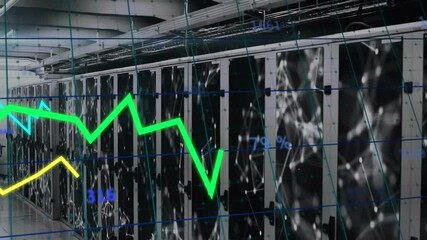 Digital Connections Overlaid On Futuristic Server Room Videos