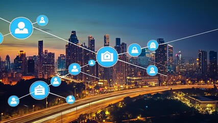 Digital Connectivity And Data Network Over City Skyline Videos