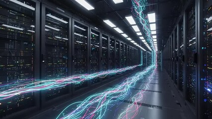 Digital Connectivity In A Cloud Server Room With Data Processing Visuals Videos