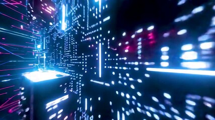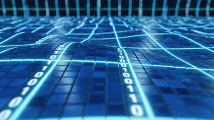 Digital Cyber Grid With Pulsing Binary And Data Streams Videos