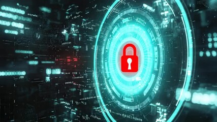 Digital Cyber Security Interface With Lock Icon And Data Stream Videos