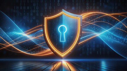 Digital Cybersecurity Lock On Glowing Shield Background Videos