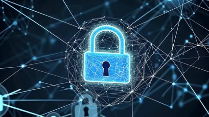 Digital Cybersecurity Padlock Overlaying Data Center Visual Videos