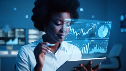 Digital Data Analysis On Tablet Screen In Virtual Network Space Videos