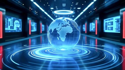 Digital Data Animation Across Globe With Tech Interface Imagery Videos