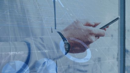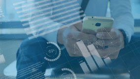 Digital Data Animation Over Businessman Using Smartphone Videos