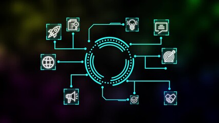 Digital Data Center With Flowchart Of Networking Icons Videos
