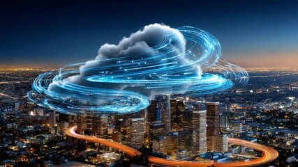 Digital Data Composite Over Cityscape Videos