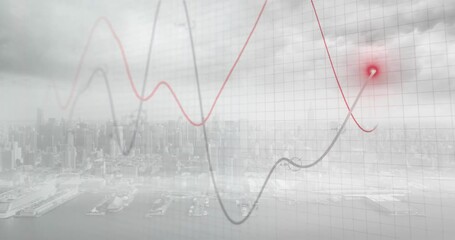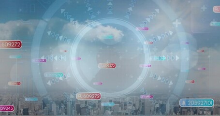 Digital Data Connectivity Over Cloudy Cityscape Videos