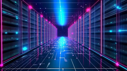 Digital Data Flow And Computer Circuit Dynamic Animation In Server Room Videos