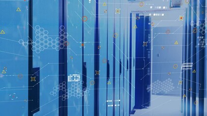 Digital Data Flow Overlay On Modern Server Racks Videos