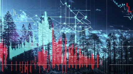 Digital Data Growth Graph Over Blue Landscape Background Videos