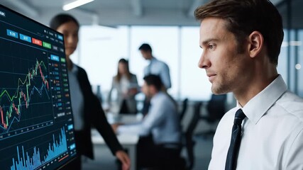 Digital Data Interaction Man Analyzing Business Statistics Videos
