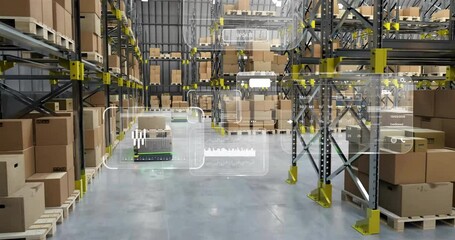 Digital Data Interface Animation Over Warehouse Videos