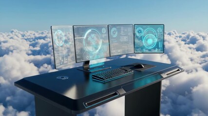 Digital Data Interface Over Ethereal Cloudscape Videos