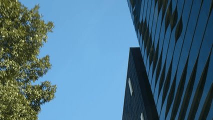 Digital Data Interface Overlay On Urban Skyscrapers Videos