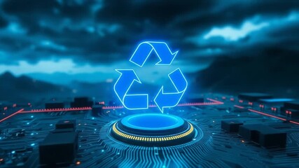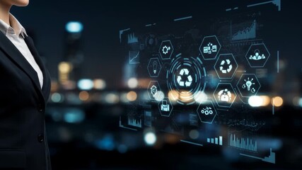 Digital Data Interface With Eco Icons And City Background Videos