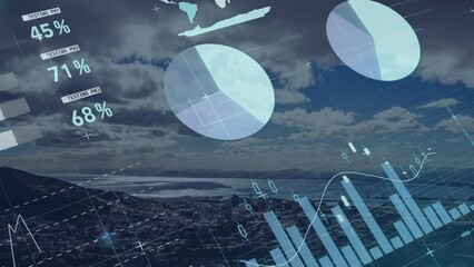 Digital Data Interfaces Over Scenic Mountain Landscape Videos