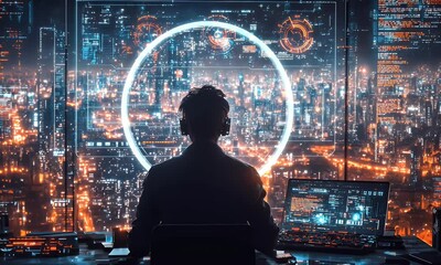 Digital Data Interfaces Overlooking Urban Skyline Videos