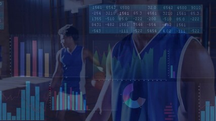 Digital Data Overlay On Basketball Game With Graphs Videos