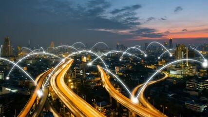 Digital Data Overlay On Cityscape For Global Data Concept Videos