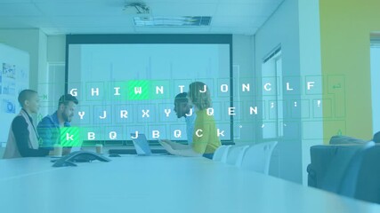 Digital Data Overlay On Diverse Business Meeting Conference Videos