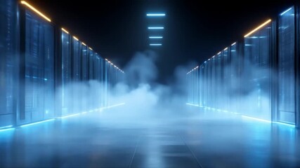 Digital Data Processing Animation In Server Room Environment Videos