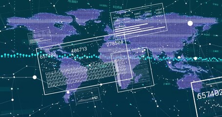 Digital Data Processing Animation With Graphs And World Map Videos