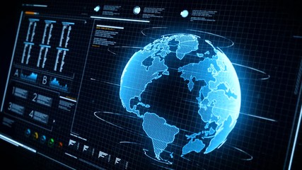 Digital Data Processing Animation With Graphs And World Map Videos