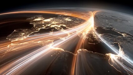 Digital Data Processing Concept With Light Trails And Globe Videos