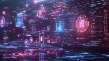 Digital Data Processing Interface With Glowing Graphics Videos