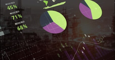 Digital Data Processing On Futuristic Screen Over Cityscape Videos
