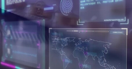 Digital Data Processing On Futuristic World Map Interface Videos