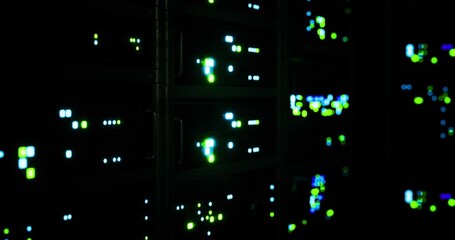 Digital Data Processing On Server Racks Displaying Analytics Videos