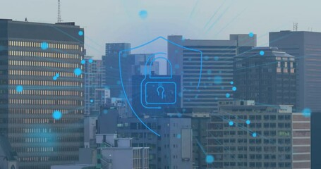 Digital Data Processing Over Cityscape With Padlock Symbol Videos